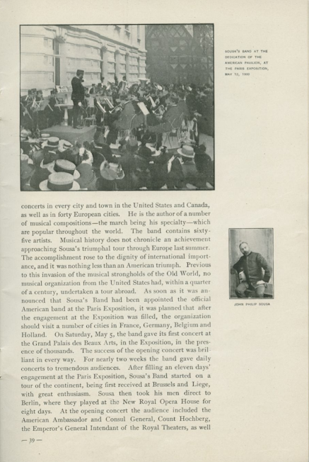Here are the relevant pages from a little booklet published in 1901 to help people get excited about the great music they would hear if they made their way to the Exposition (images courtesy of the Theodore Roosevelt Inaugural Site Foundation):